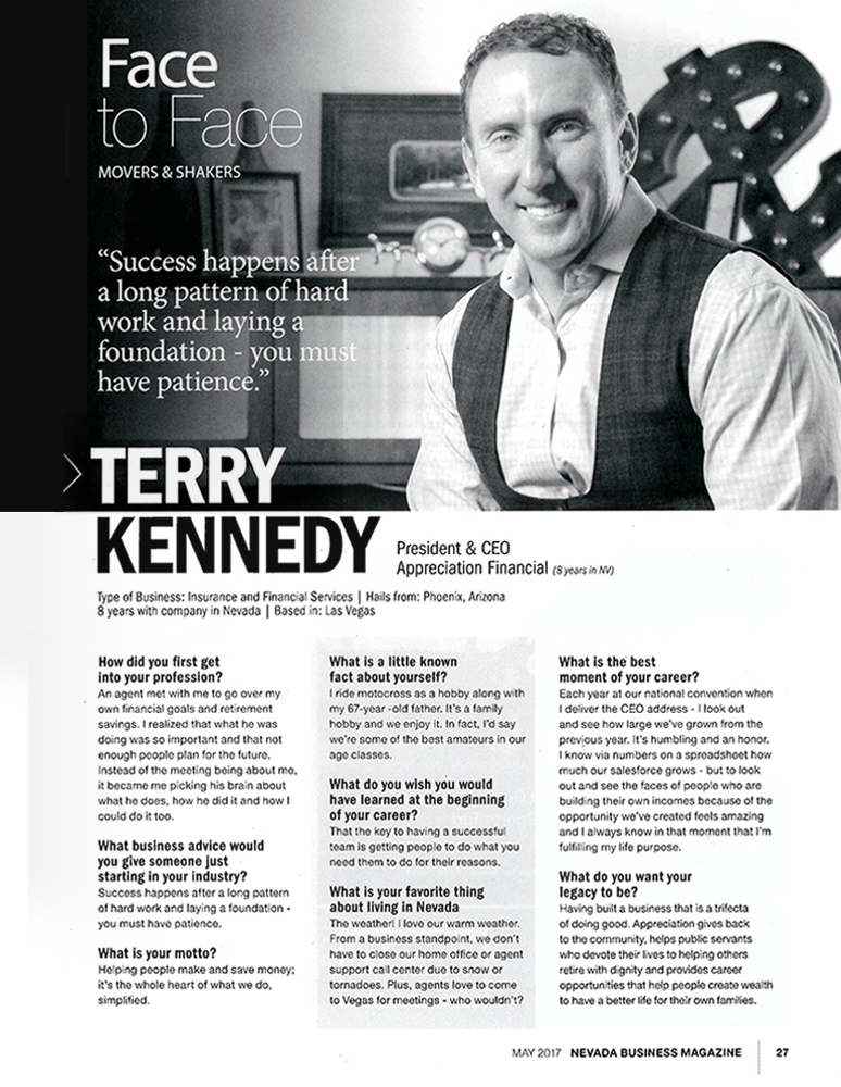 "Terry Kennedy is a longtime Las Vegas native and the president and CEO of Appreciation Financial..."